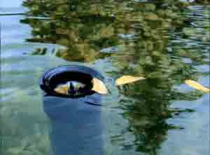 Der Skimmer verfügt über einen festen Fuss mit 35 mm Durchmesser, der so gestaltet ist, dass er Kieselsteine aufnehmen kann. Er lässt sich somit natürlich und standfest in den Gartenteich integrieren. Mit seinem Teleskoprohr lässt er sich mühelos an die Teichtiefe anpassen.