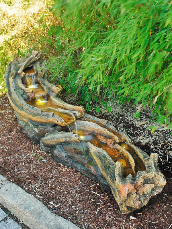 Das Bachlauf-Set Hedao aus Polystone ist echtem Fels und Holz nachempfunden. Das Set besteht aus 2 Bachlaufelementen inkl. Pumpe und LED-Beleuchtung.