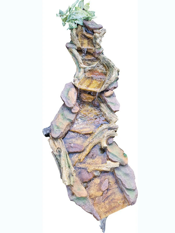Das Bachlauf-Set Hong He aus Polystone ist echtem Fels und Holz nachempfunden. Das Set besteht aus 2 Bachlaufelementen