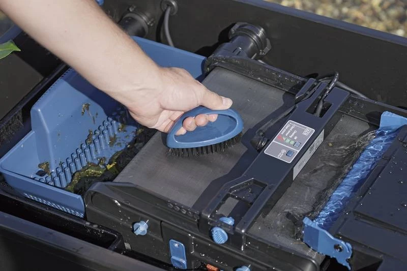 Saugt Schmutzwasser vom Teichgrund ab