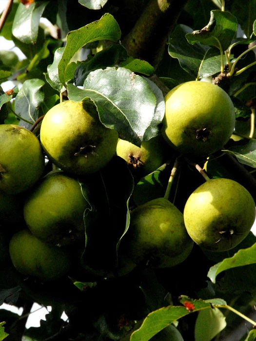 | Frucht: | kugelige, grüngelbe und große Frucht. Das Fruchtfleisch ist süß und doch herb zugleich. Die Früchte bilden einen hohen Saft- und Zuckergehalt. |