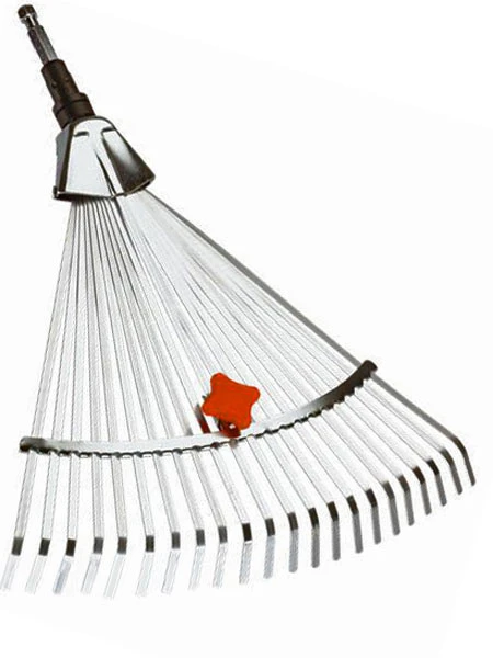 Dabei lässt sich der Abstand der elastischen und verzinkten Federstahlzinken einfach verstellen, um mit einer Arbeitsbreite von 30 bis 50 cm fein oder grob kehren zu können.