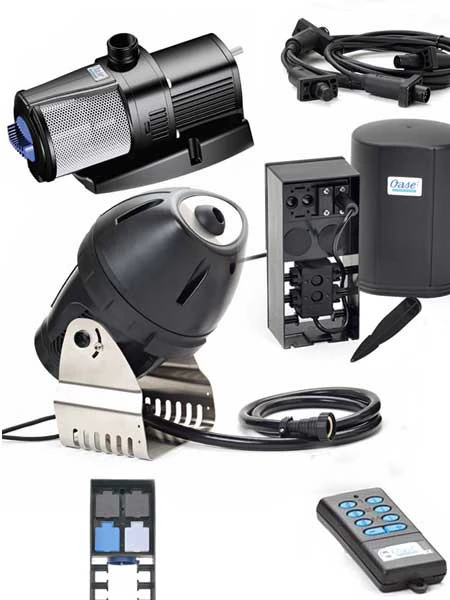 An die Steuerungseinheit lässt sich ein Erweiterrungsset anschließen. Die kombinierbare Elektronik der im Set mitgelieferten Fernbedienung steuert beide Jumping Jets. Über die ebenfalls mitgelieferte Gartensteckdose FM-Master 3 kann die Pumpe ferngesteuert ein- und ausgeschaltet und die Strahlweite und -Höhe des Jumping Jets reguliert werden.
