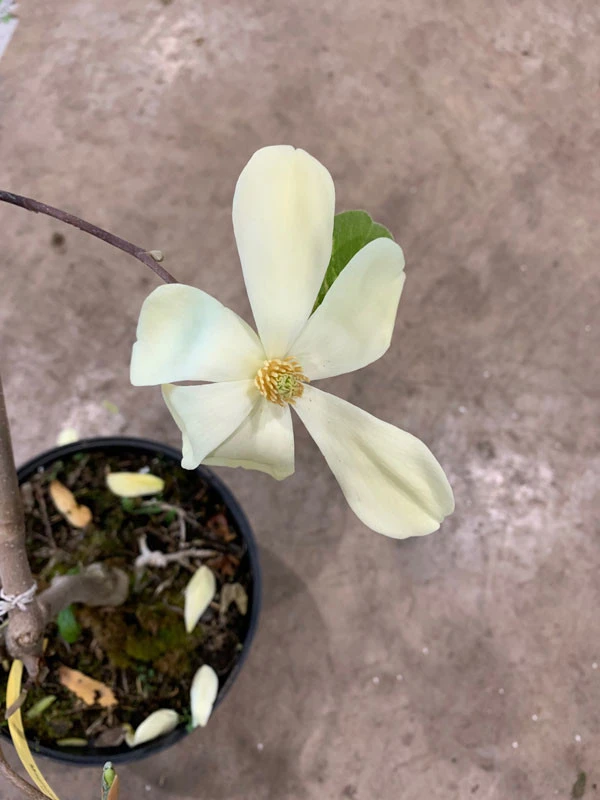 Blüte: Noch vor dem Laubaustrieb zwischen April und Mai erscheint eine leuchtend gelbe und schalenförmige Blüte. Diese Blüte erreicht einen Durchmesser von ca. 10 cm. Die Blüte leuchtet stark. Diese Leuchtkraft intensiviert sich mit der Sonneneinstrahlung. Die Blüte verströmt einen angenehmen Zitrusduft, der zum Verweilen einlädt. Magnolia ‚Maxine Merrill ist für besonders harte und langanhaltende Blüten, auch bei schlechtem Wetter bekannt. Das hat sie allen anderen Magnolien voraus.