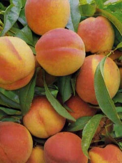 | Frucht: | Sehr groß, rund; grüngelb, später sattgelb, sonnenseits wenig rötlich; Haut stark behaart; Fruchtfleisch hellgelb; saftig kräftiger Pfirsichgeschmack mit nur geringer Säure. |