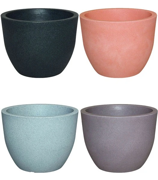 Der Boden des Gefäßes ist geschlossen und besitzt Soll-Bruchstellen zum Aufbohren von Entwässerungslöchern. Bei uns können Sie den Pflanztopf Rimini in 4 verschiedenen Farben und unterschiedlichen Größen kaufen.