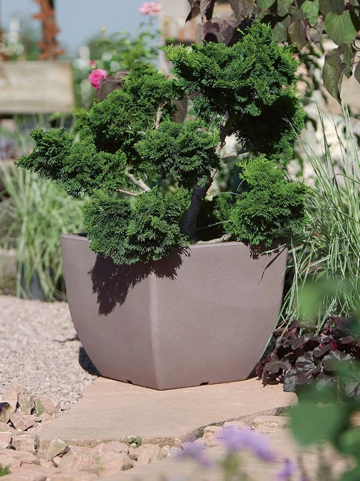 Der Pflanztopf Ravenna by Geli aus hochwertigem und recycelbarem Kunststoff besticht durch sein steinfarbenes Granit-Dekor. Dieses ist echten Granitgefäßen originalgetreu nachempfunden. Dadurch ist dieser Pflanztopf auf den ersten Blick nicht von einem echten Granit-Kübel zu unterscheiden. Der Pflanztopf ‚Ravenna‘ zeichnet sich durch seine Frostbeständigkeit und lange Lebensdauer aus.