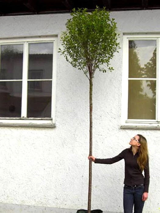 | Lieferqualität: | Junger Hochstamm mit einer Stammhöhe von ca. 2,20 m im Container. Mit einer auf dem Stamm aufsitzenden kleinen Krone, die im Lieferzustand fachgerecht etwas zurück geschnitten ist, um eine gute Kronenentwicklung nach der Verpflanzung zu gewährleisten. Stammhöhe: ca. 2,20 m |