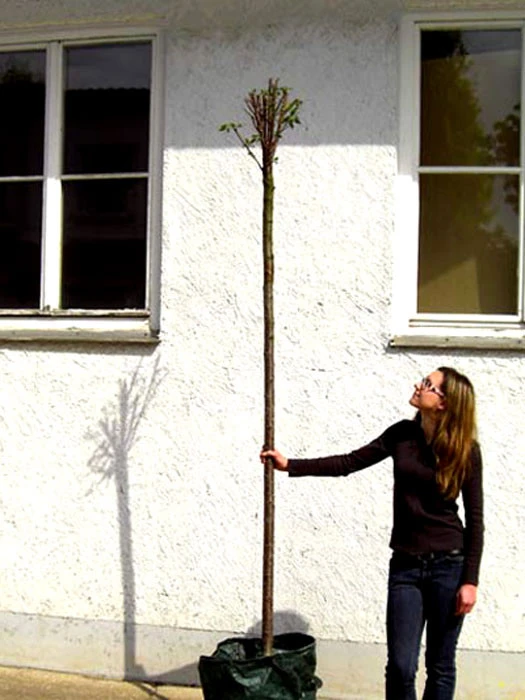 Bild 4: durchschnittliche Lieferqualität nach fachgerechtem Rückschnitt für eine gute Kronenentwicklung nach der Verpflanzung. Der Umfang der Belaubung hängt vom Lieferzeitpunkt ab.