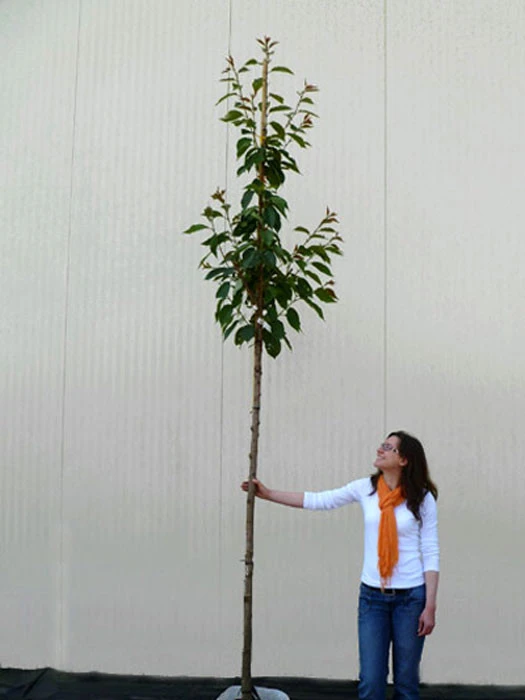 | Lieferqualität: | Junger Hochstamm mit einer Stammhöhe von ca. 2,00 m im Container. Mit einer auf dem Stamm aufsitzenden kleinen Krone, die im Lieferzustand fachgerecht etwas zurück geschnitten ist, um eine gute Kronenentwicklung nach der Verpflanzung zu gewährleisten. Stammhöhe: ca. 2,00 m |