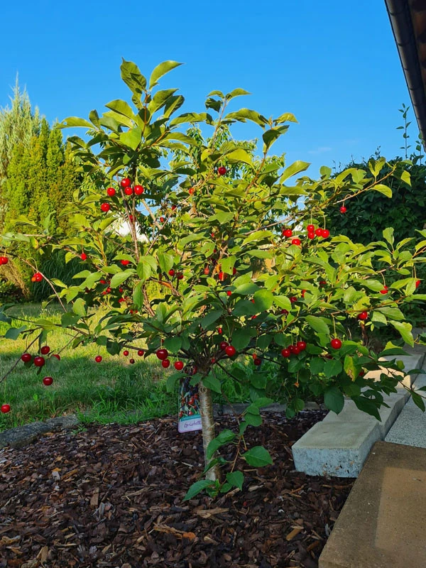 | Frucht: | Rot, mittelgross, saftig, mit typischem Sauerkirschen-Geschmack. |